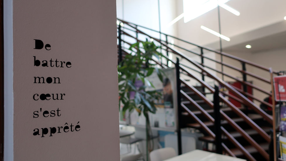 Collage et pochoir de textes sur le site de l'université du Havre.